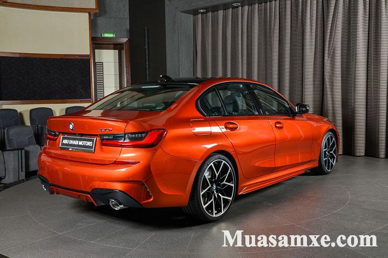 Ở Hoa Kỳ, để tùy chọn màu cam Sunset Orange metallic sẽ phải thêm 550 đô la nếu bạn bổ sung nó vào một chiếc 330i M Sport 2019, chẳng hạn như chiếc bạn thấy ở đây, được trưng bày tại phòng trưng bày ô tô của hãng Abu Abu. Các tính năng đáng chú ý khác bao gồm lưới tản nhiệt hình quả thận màu đen với sọc M, bộ M Performance và bộ la-zăng Ferric Grey 20 inch hai tông màu và mâm đen.